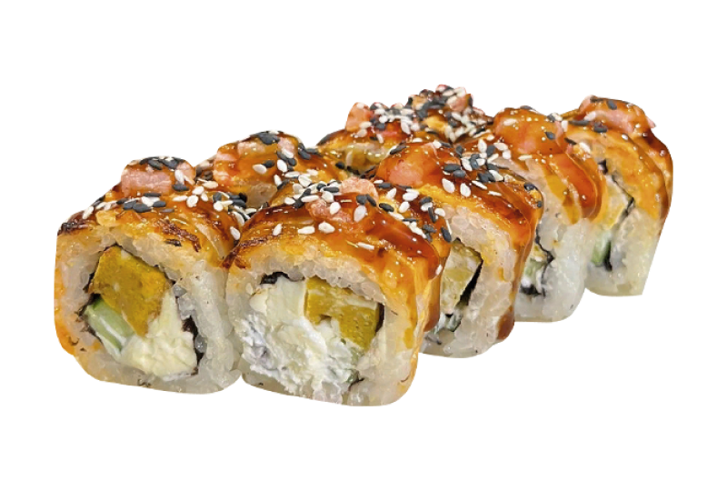 Лосось, огурец, сливочный сыр, икра масаго, "сырный" топ